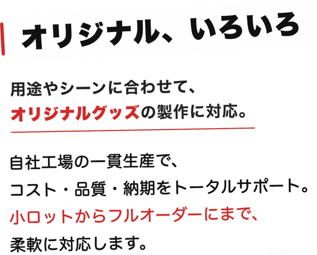 オリジナルグッズ・ノベルティグッズの製作なら自社工場によるノベルティ製造
